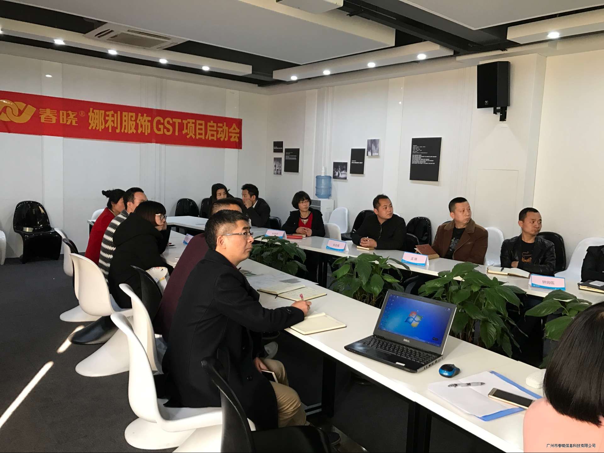 通过近3个月的沟通,终娜利服饰确定于3月6日正式启动GST标准化管理项目。娜利服饰此次GST项目的启动主要目的分为两个方向, 是解决前端成本部的成本管理,包括面料的面辅料的成本管理、加工的成本管理、特殊工艺及外发工艺的成本管理,通过系统各个模块的不同授权,终形成整体成本的管理与控制及快速反应。第二个方向是生产环节的运用,首先解决的是标准工时的问题,通过系统改变原有测时的方式,进而通过标准工时进行生产线的排位,来调整生产线的平衡率,减少生产线分工大调整的现象。同时,基于标准工时来规范工价体系,提升工资发放的合理性与及时性。
