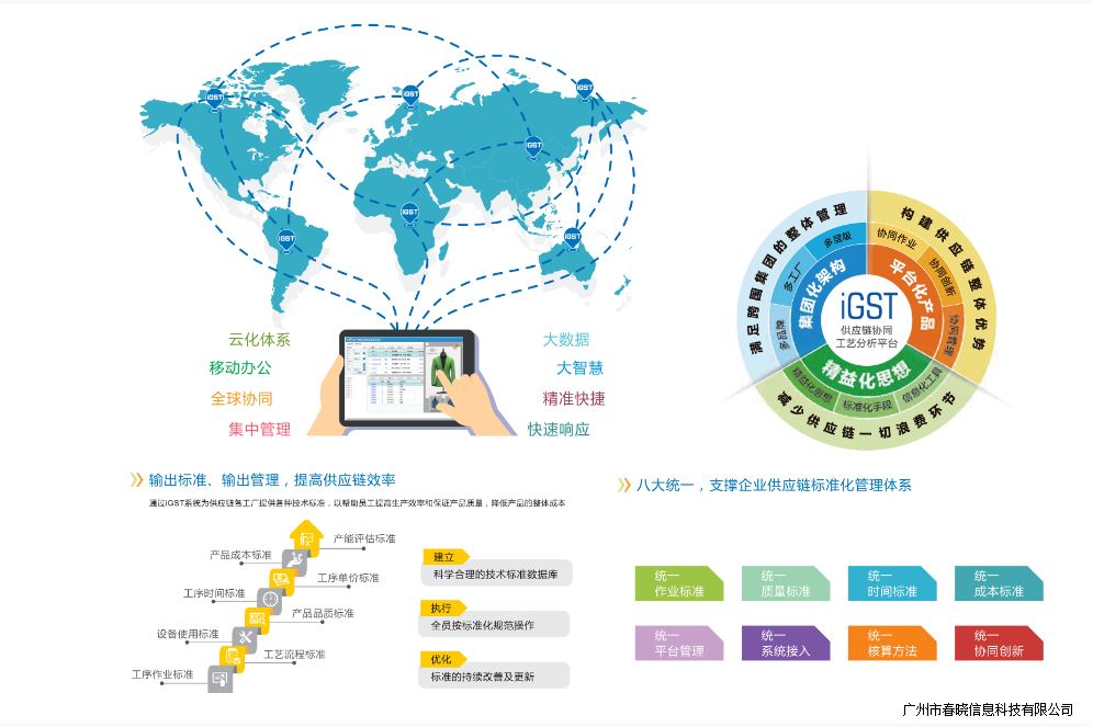 通过优德88iGST标准化协同管理平台,特步供应链管理部门协调内部外部信息,让供应链的每一个参与者都能清晰了解并掌握生产工艺、品质要求、工艺流程、作业方法、作业时间、作业成本、生产计划、订单负荷、人机需求等标准化数据、从而达到统一标准、统一规范化的管理。